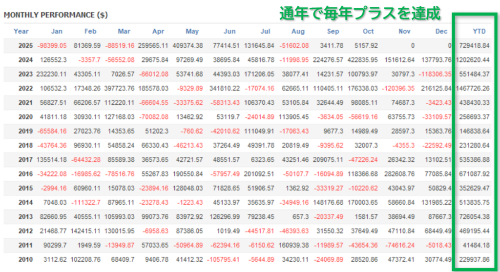 多くの優秀なEAは、15年・20年のバックテストでトータルプラスになっています。