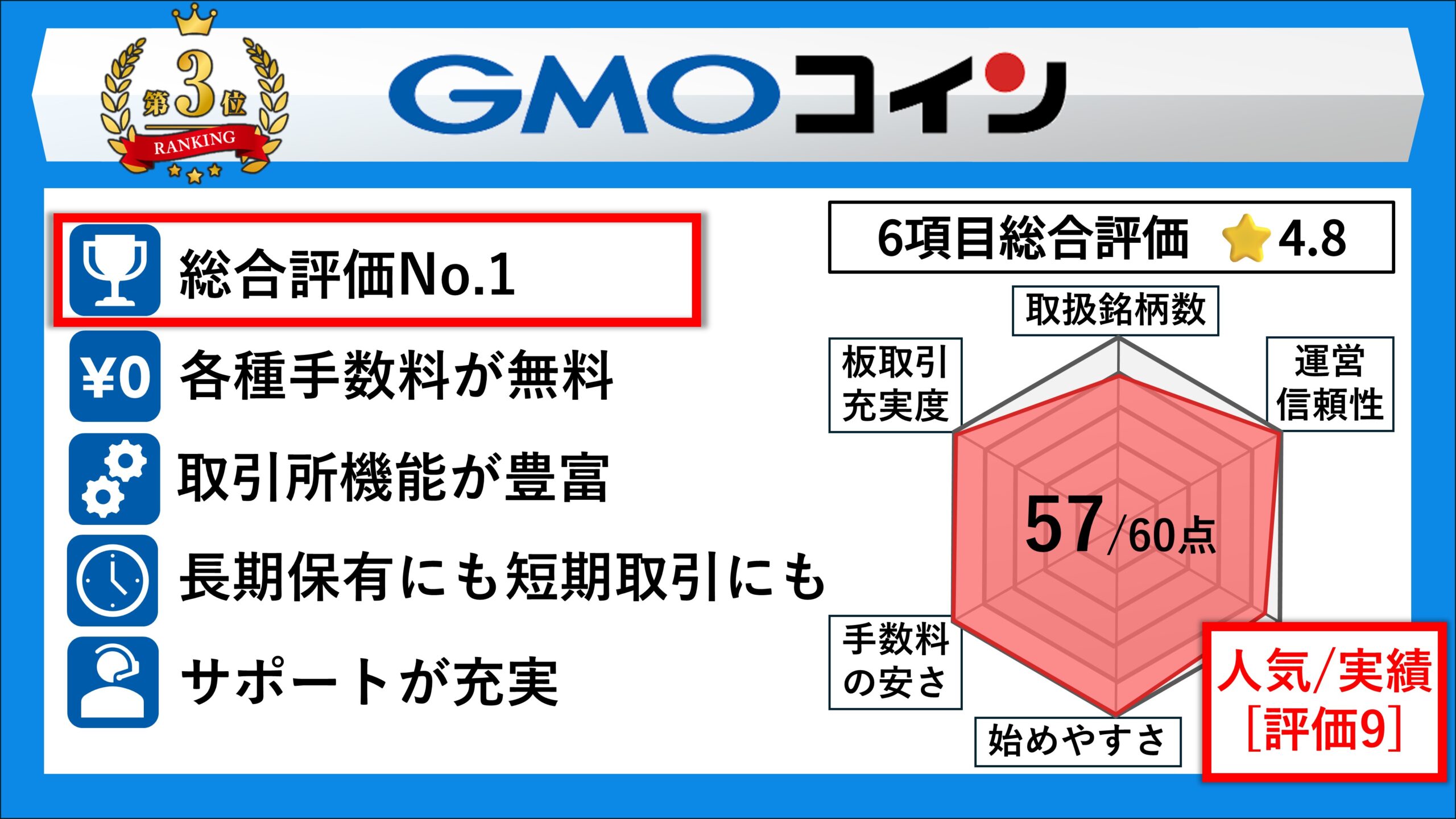- 3位.【GMOコイン】(人気・実績評価:9/10)