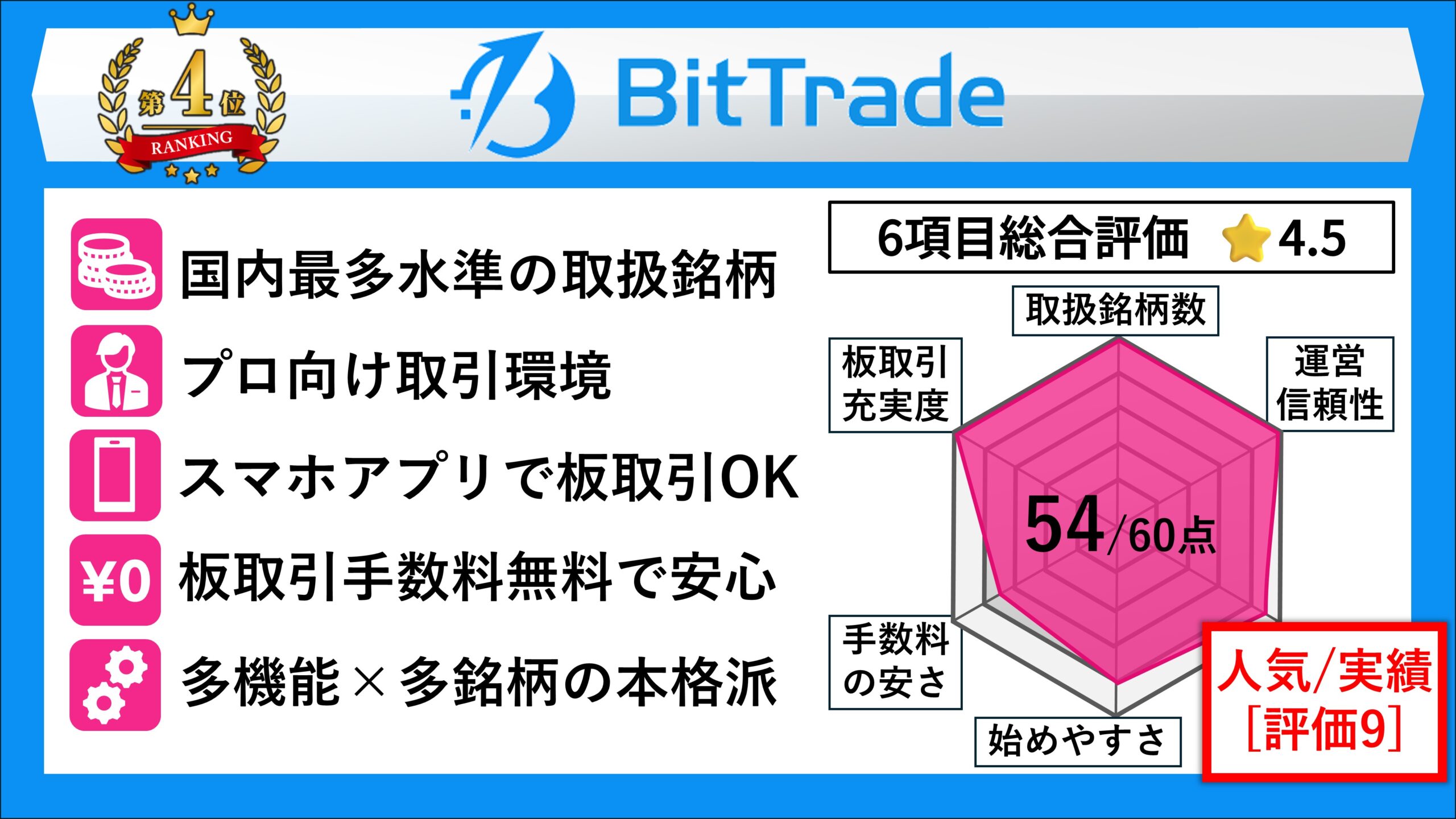 - 4位.【BitTrade】(人気・実績評価:9/10)