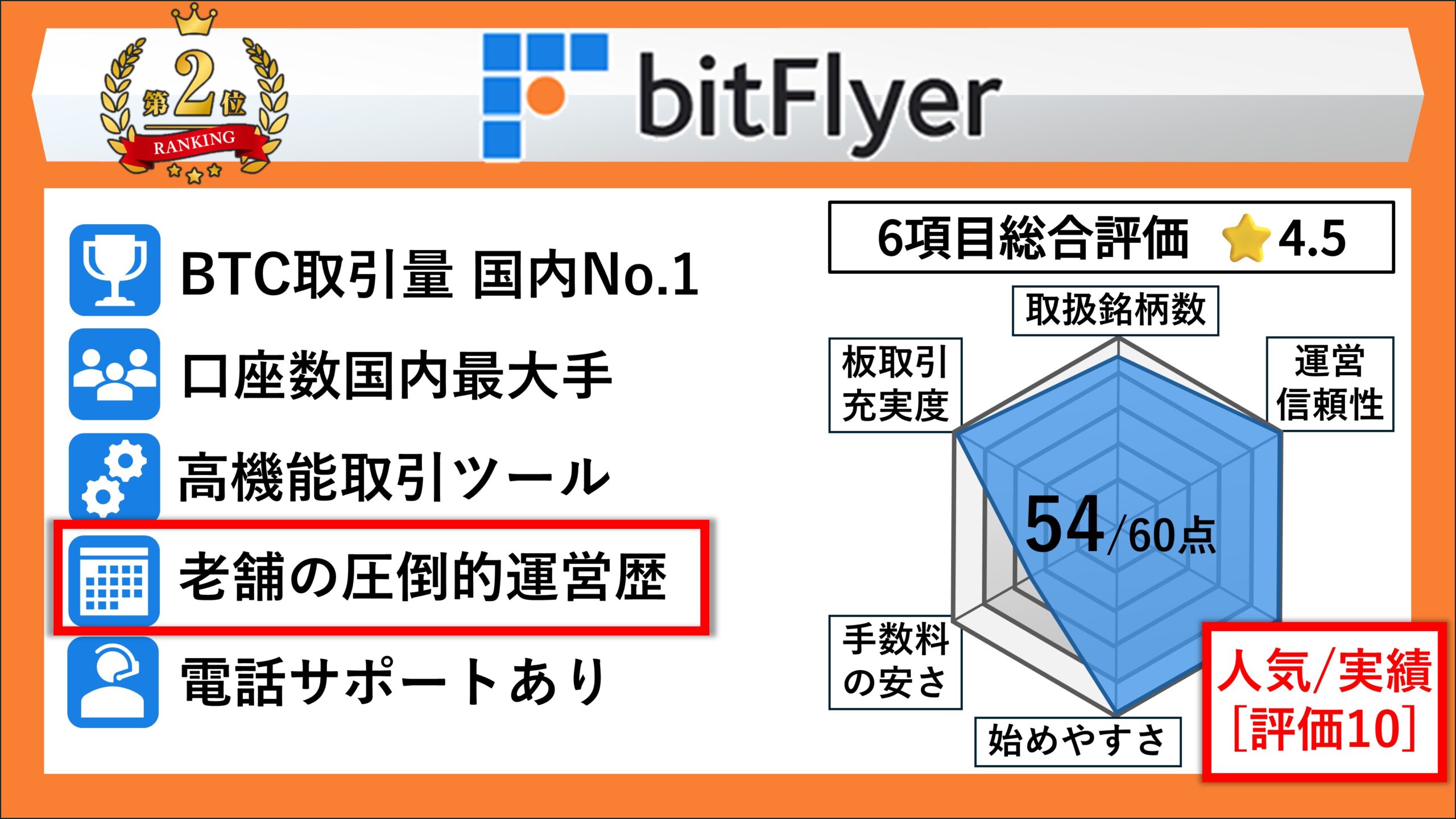2位.【bitFlyer】(人気・実績評価:10/10)
