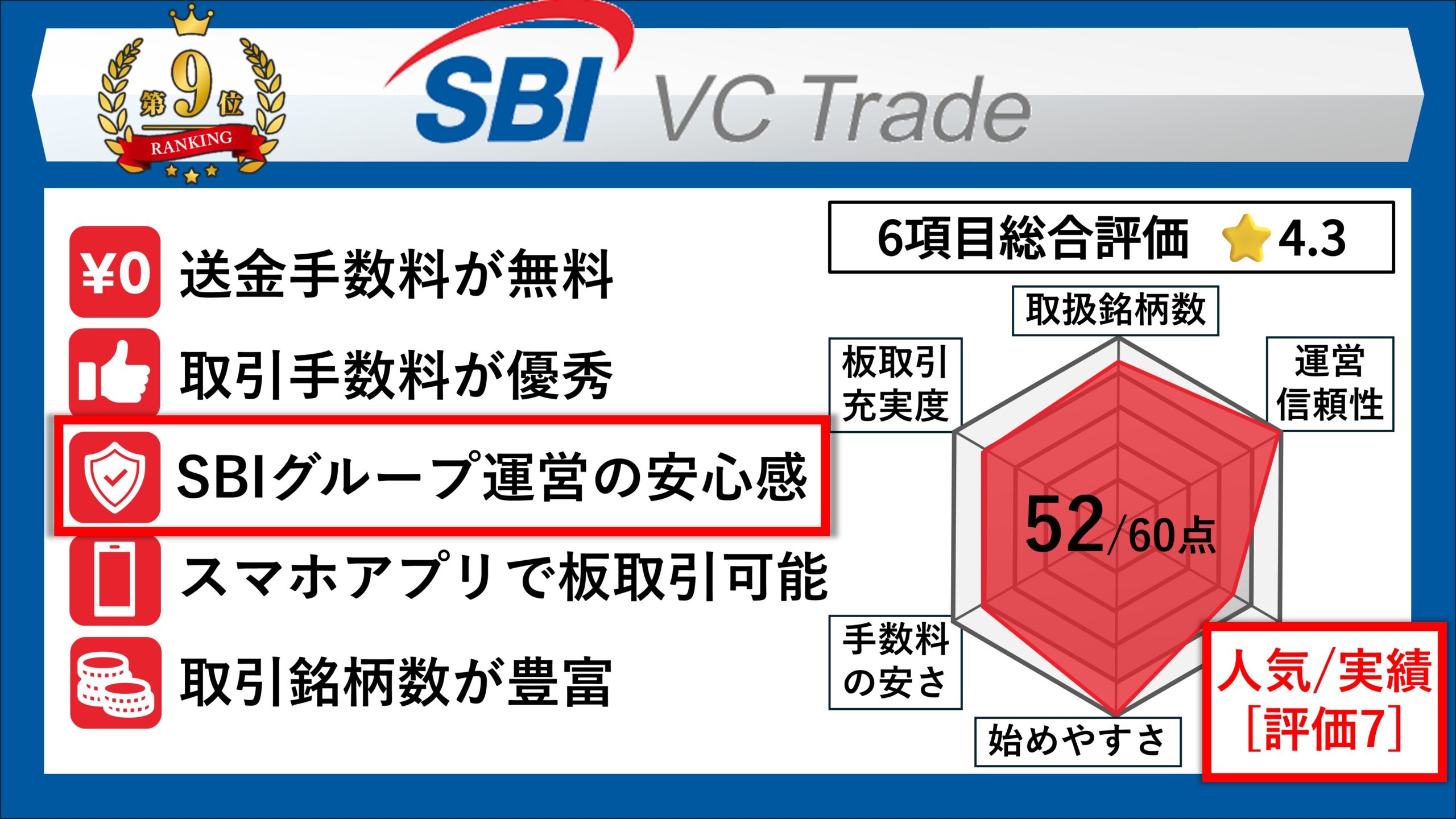 - 9位.【SBI VCトレード】(人気・実績評価:7/10)