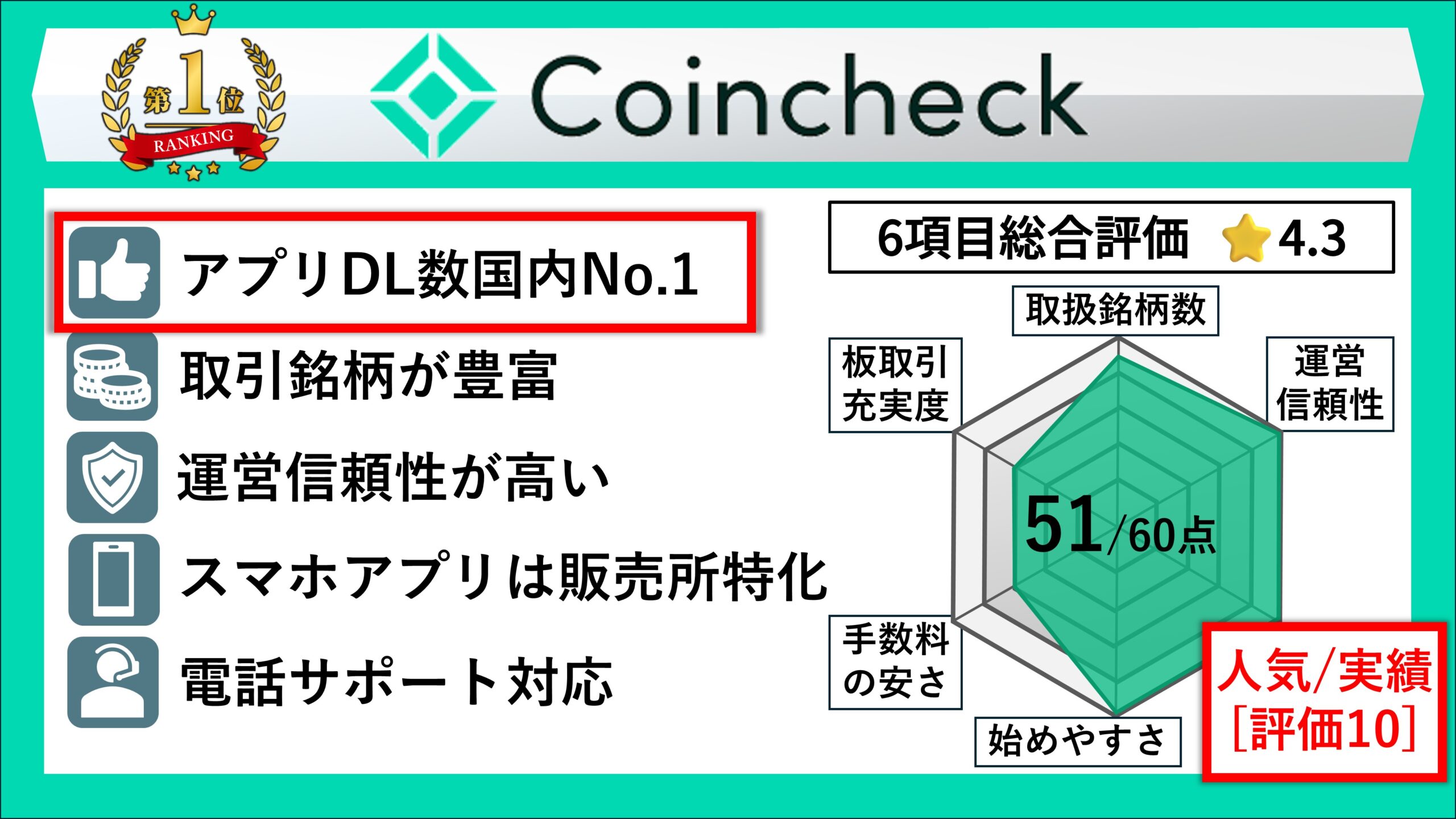 - 1位.【Coincheck】(人気・実績評価:10/10)
