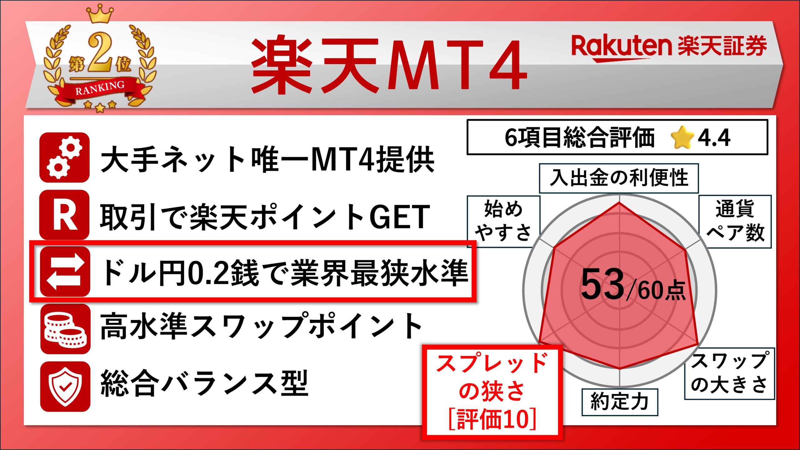 2位【楽天MT4】(スプレッドの狭さ評価:10/10)