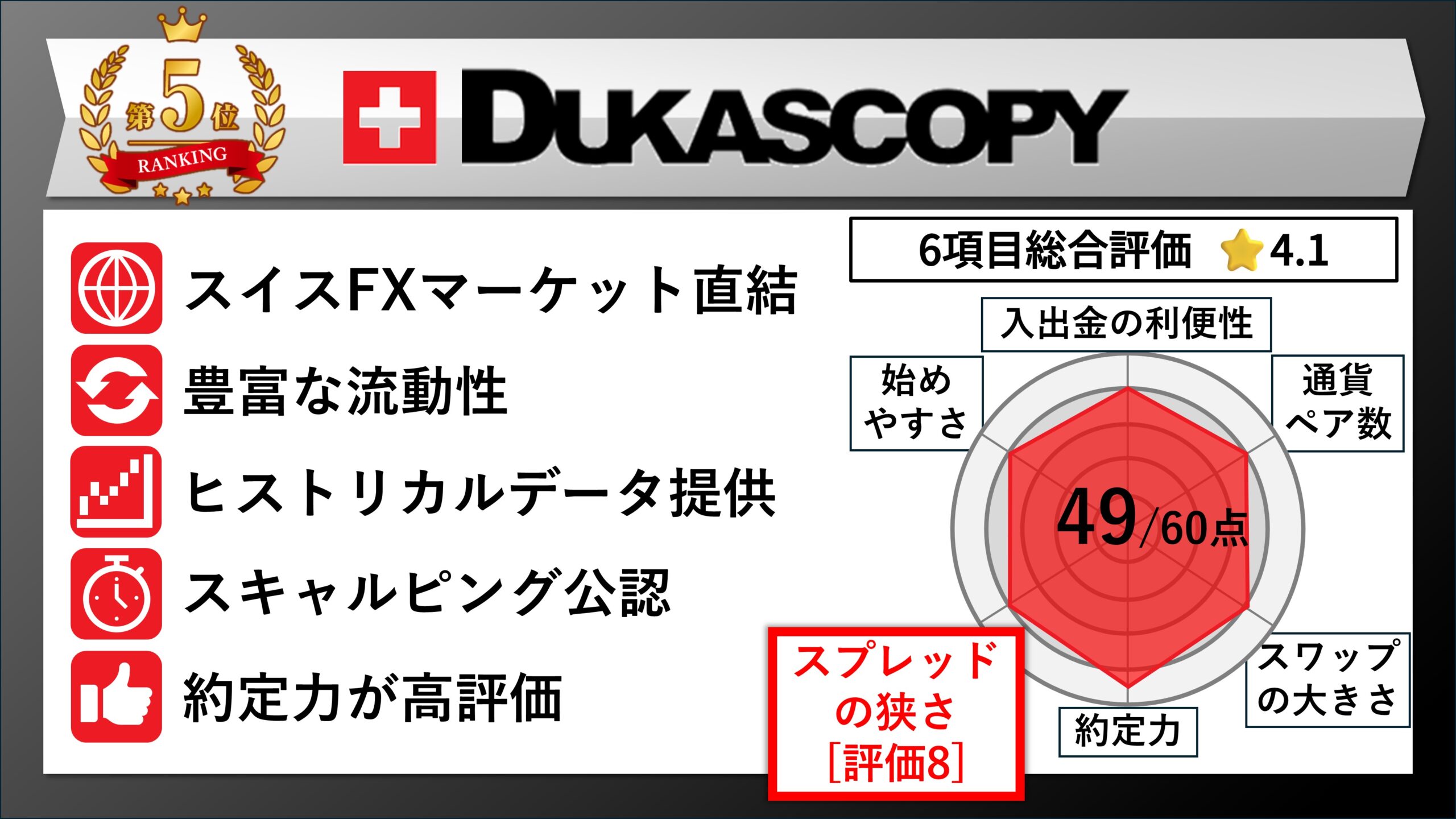 5位【デューカスコピー・ジャパン MT4】(スプレッドの狭さ評価:8/10)