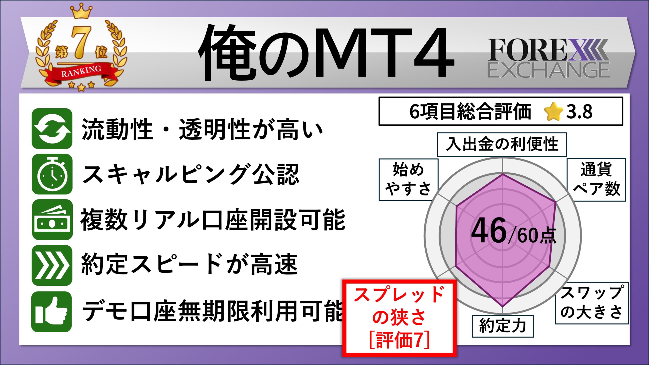 7位【FOREX EXCHANGE 俺のMT4】(スプレッドの狭さ評価:7/10)