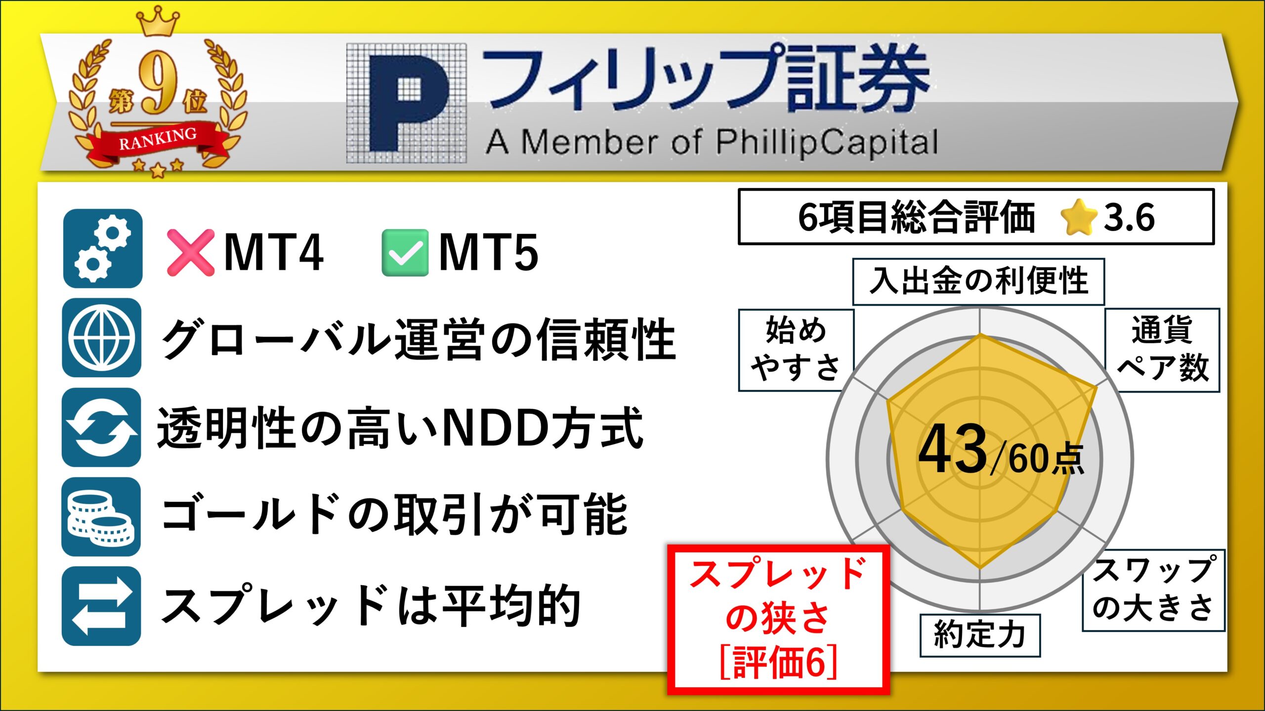 9位【フィリップ証券 MT5】(スプレッドの狭さ評価:6/10)
