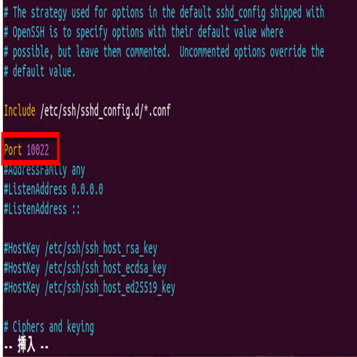 Port番号を修正します。セキュリティを考慮して、ポート番号は標準の22番ではなく、ここでは一例として10022番に変更します。